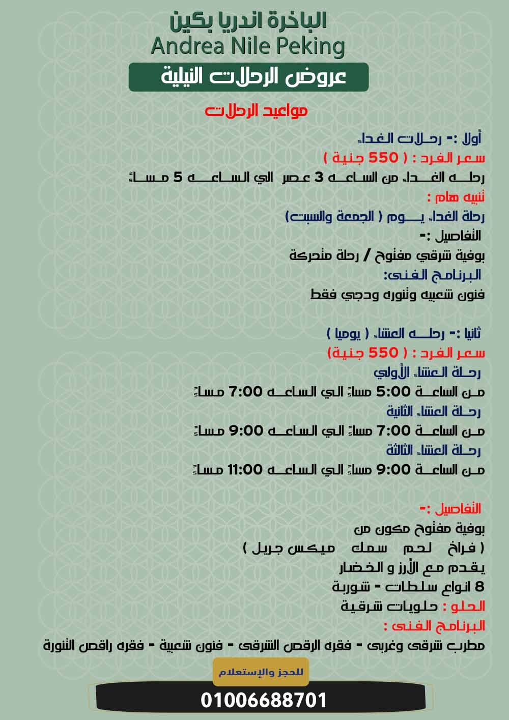 فى حالة طلب مشروبات اخري يـتـم الـحـسـاب عـلـى الـمـشـروبـات بـالـبـاخـرة